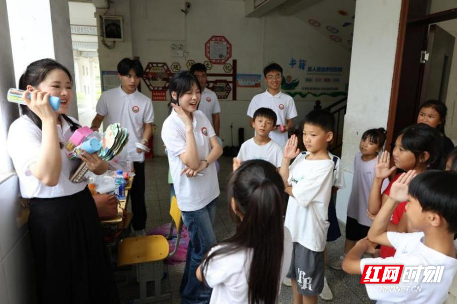 7月10日,湖南农业大学“红韵星火”实践团联合山东大学志愿服务队,走进怀化市溆浦县统溪河镇学校,开展“七彩假期”系列公益课堂活动。