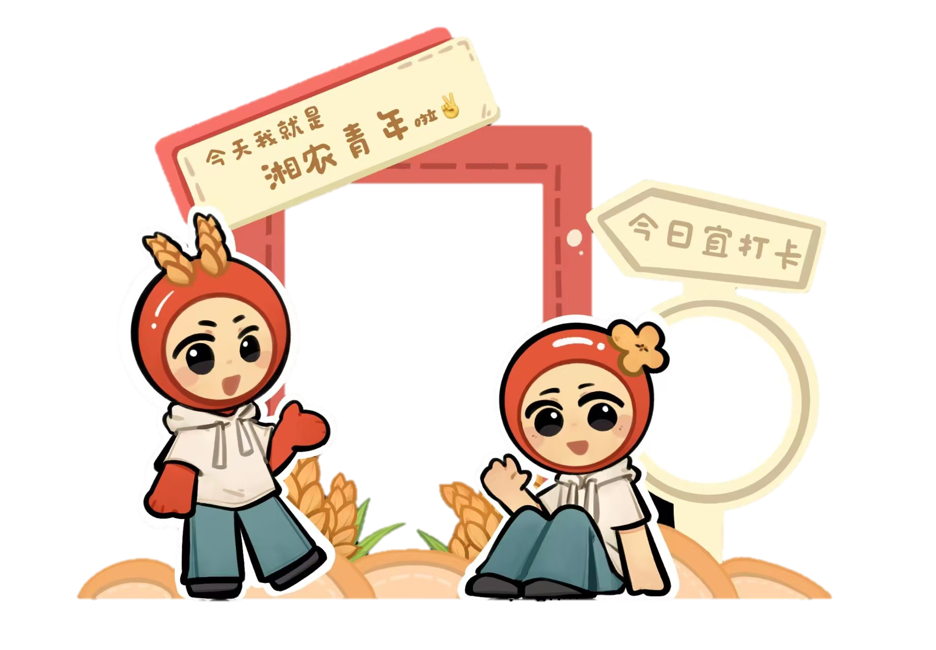 上方的红色相框与“今天我就是湘农青年啦”的标语,搭配右侧的“今日宜打卡”指示牌,既增添了互动性,又强化了新生的校园归属感。
