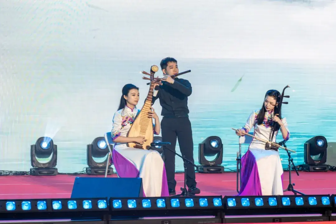 开场歌曲《中华民族》气势恢宏,唱响了爱国情怀,瞬间点燃现场氛围。演出中,民乐经典《刀剑如梦》与湖湘韵味浓厚的《洞庭鱼米乡》等歌曲奏响侠骨柔情,奏出中华传统文化的深厚底蕴与地域风情;