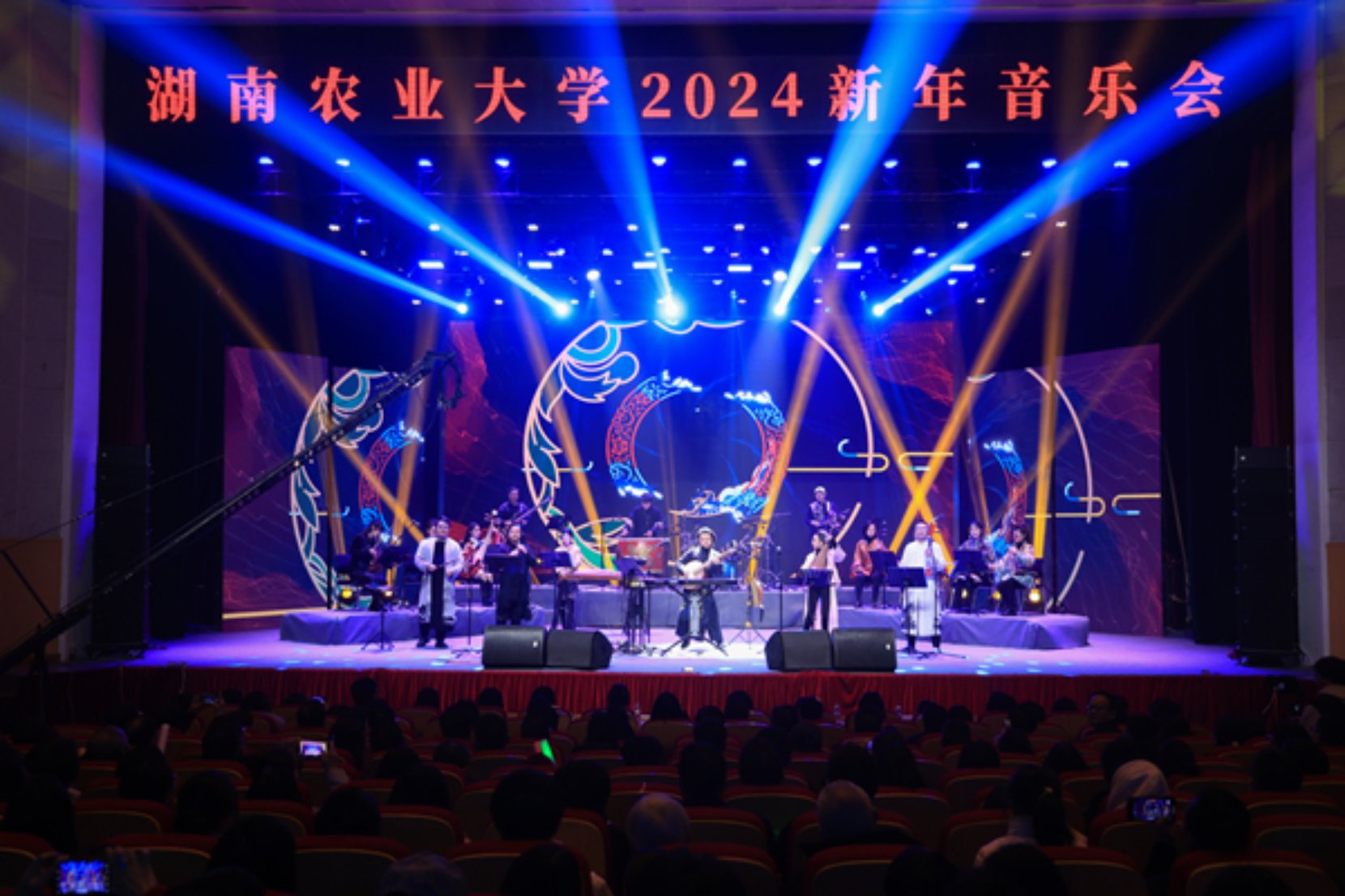 国家一级作曲、湖南省文化艺术基金会主席、湖南省人大常委会原副主任、我校78级农机设计制造专业校友肖雅瑜,全体在校校领导、部分原校领导及在湘优秀校友代表等1300余师生共同观赏新年音乐会。