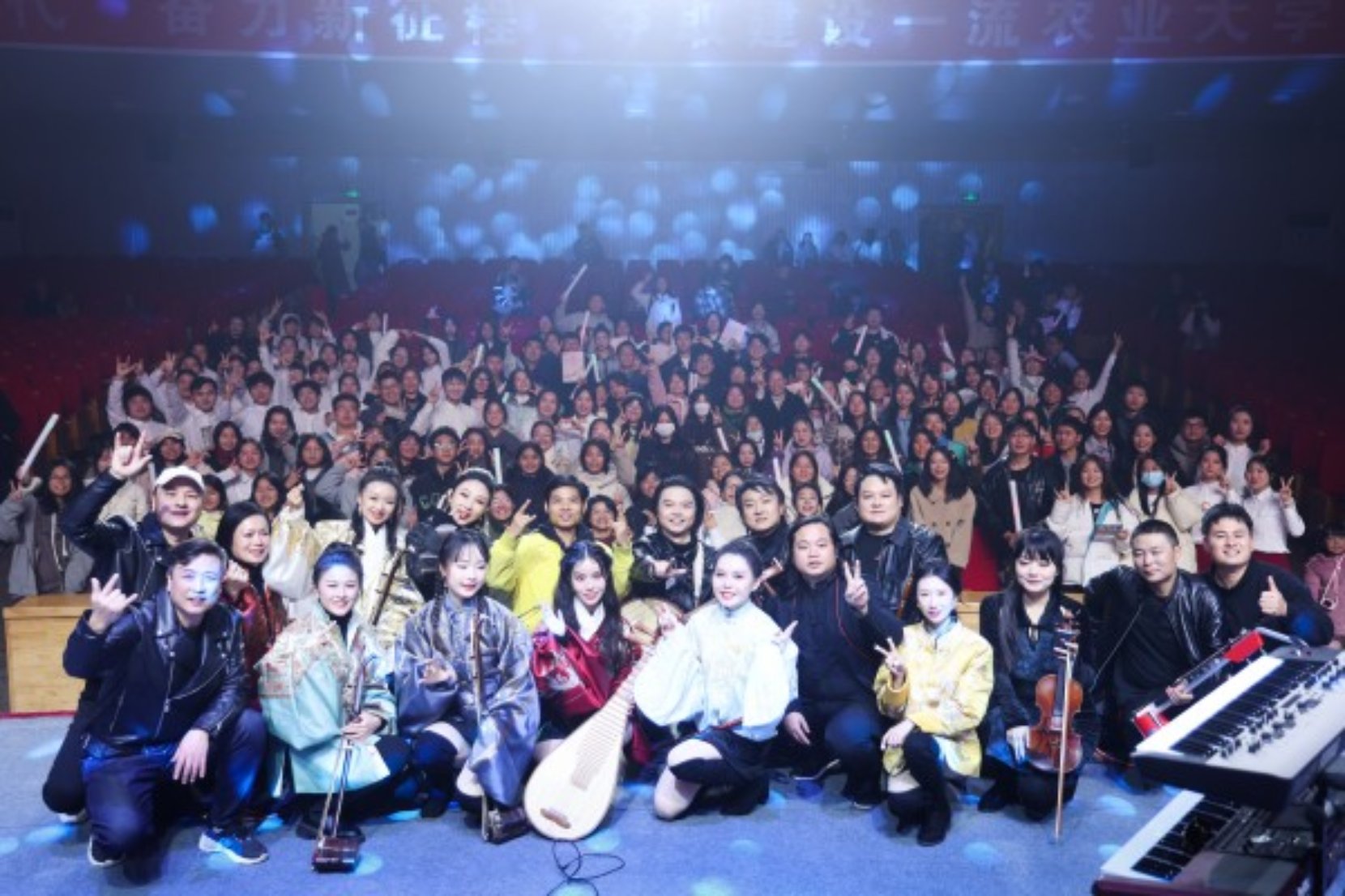 本网讯(校工会 张晶)12月28日晚,大礼堂灯光璀璨,观众欢呼雀跃,一年一度的新年音乐会如期而至。长沙瑜乐团为师生奉上了一场民乐艺术盛宴,观众们跟随着国乐师们一起听高山,奏流水,品民乐,赏风潮,齐歌唱。