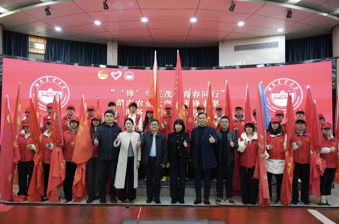 校党委委员、副校长覃红燕在讲话中向全校青年志愿者致以问候并围绕雷锋精神的新时代内涵作了深入阐述。她强调,广大湘农学子要坚定信念的能量,做扎根大地、强农兴农的追梦人;要涵养大爱的胸怀,做心系三农、情暖乡土的奉献者;要塑造忘我的精神,做耕耘不辍、默默坚守的实干家;要永葆进取的锐气,做科技兴农、敢为人先的弄潮儿。进一步弘扬雷锋精神,在志愿服务中锤炼品格、增长才干,为推动学校发展和强国建设贡献青春力量。