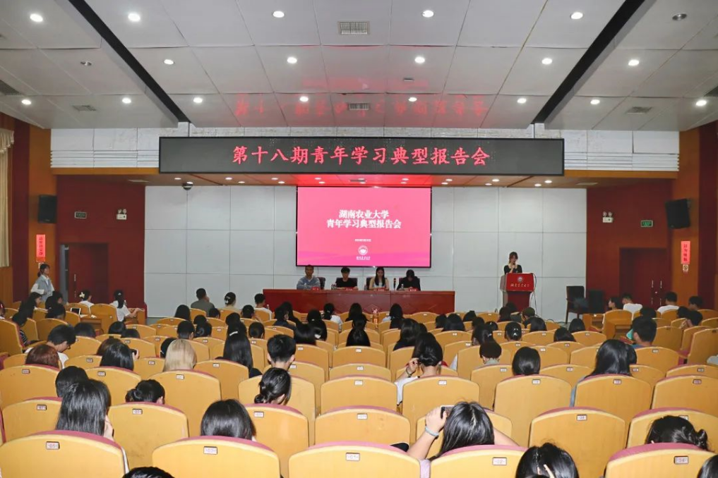 5月25日晚上,湖南农业大学第18期青年学习典型报告会在学海厅成功举办。本次活动邀请到农学院本科生谢其珊同学,生物科学技术学院本科生黄敏棱同学,化学与材料科学学院本科生张平治同学和信息与智能科学技术学院本科生余广平同学为我们分享心路历程,共话青春成长。