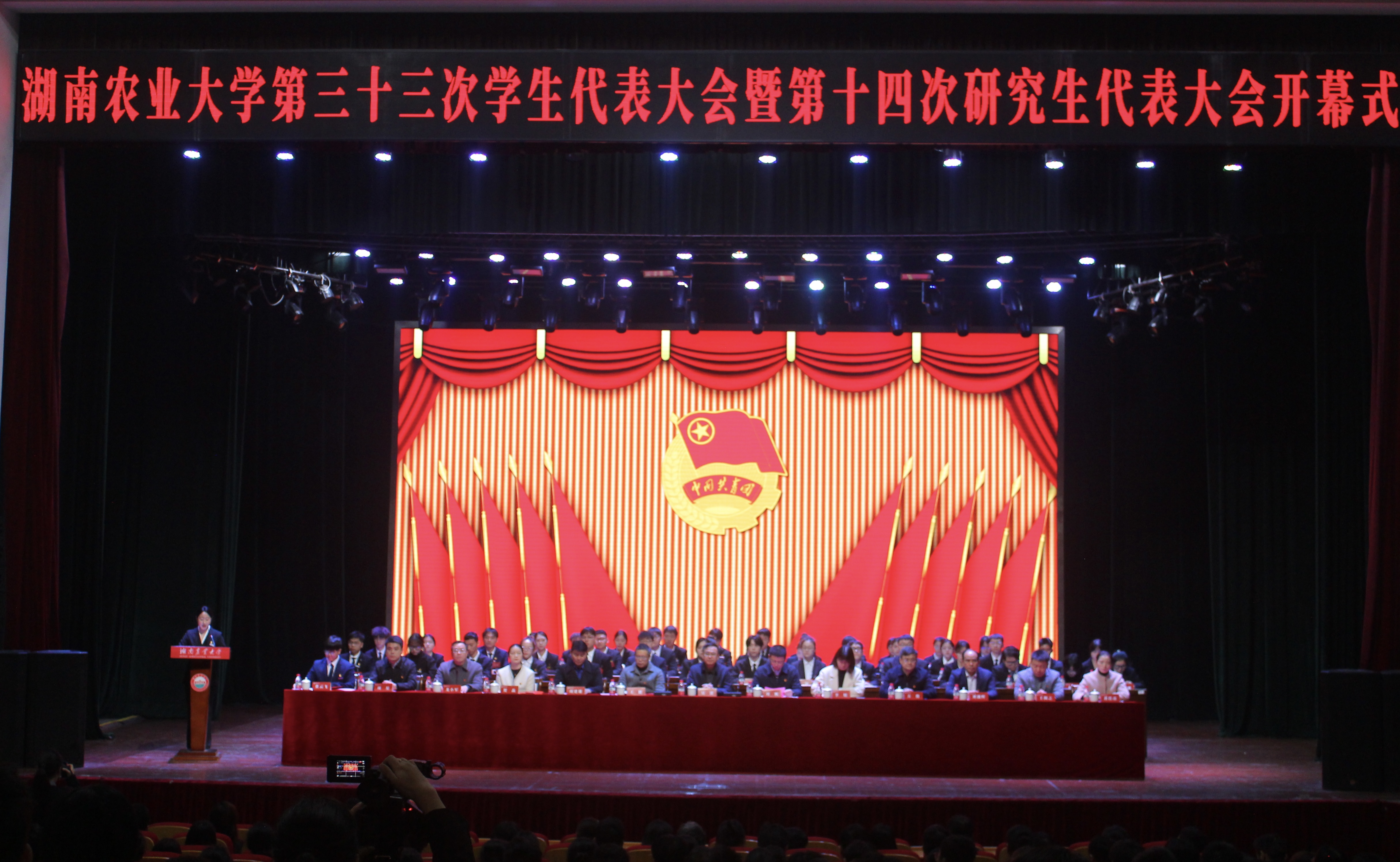 开幕式上,周帆宣读了省学联《关于同意召开湖南农业大学第三十三次学生代表大会、第十四次研究生代表大会的批复》。校宣传部、统战部常务副部长王健宣读学校党委《关于同意召开湖南农业大学第三十三次学生代表大会暨湖南农业大学第十四次研究生代表大会的批复》。校团委副书记(主持工作)贺晶致开幕辞。中南大学研究生会主席团成员张云飞代表兄弟高校学生会组织致贺词。