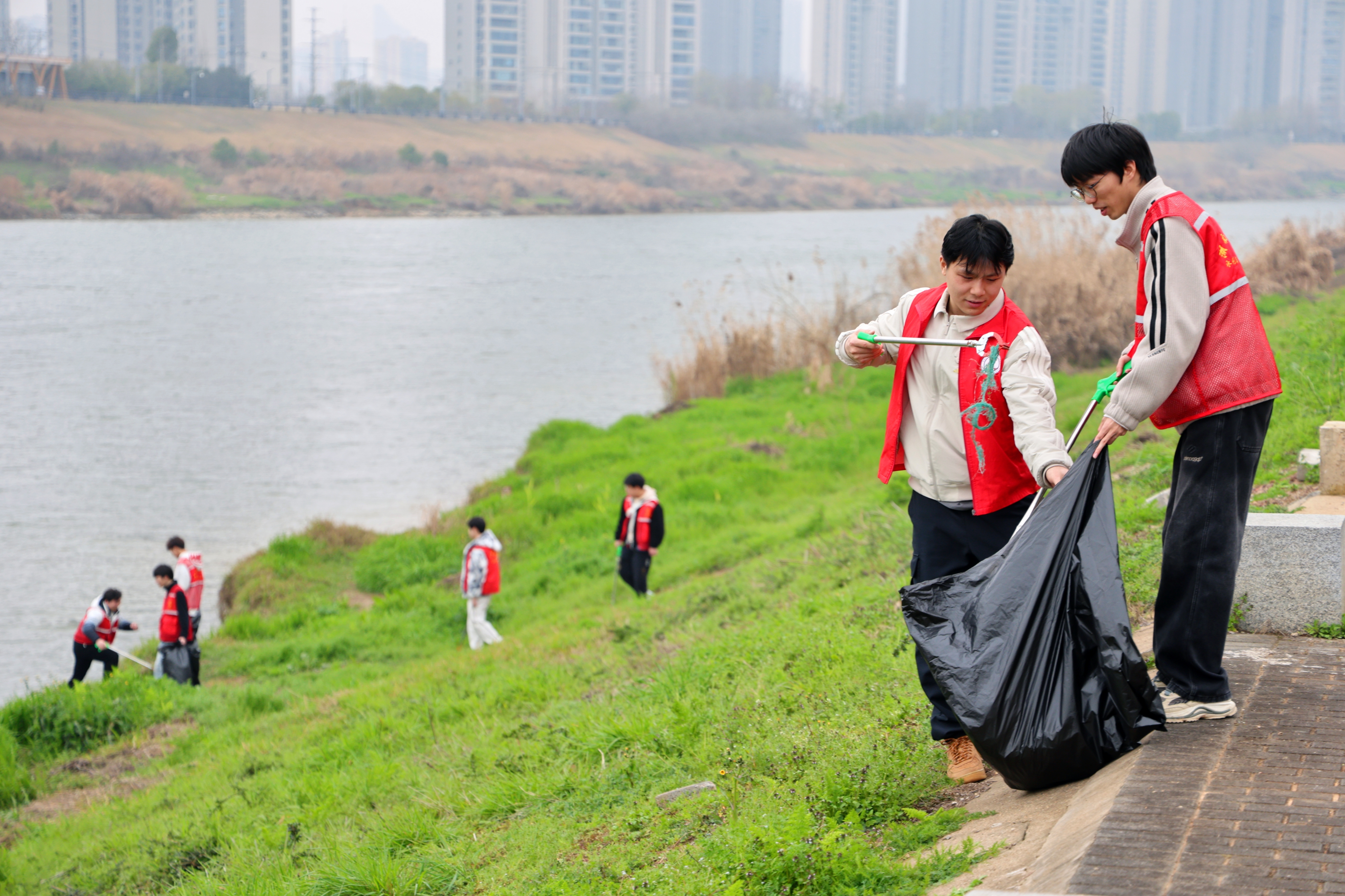 水利与土木工程学院“上善若水”青年志愿者服务队开展“秉锋志愿净河岸,践水初心守安澜”护河活动
