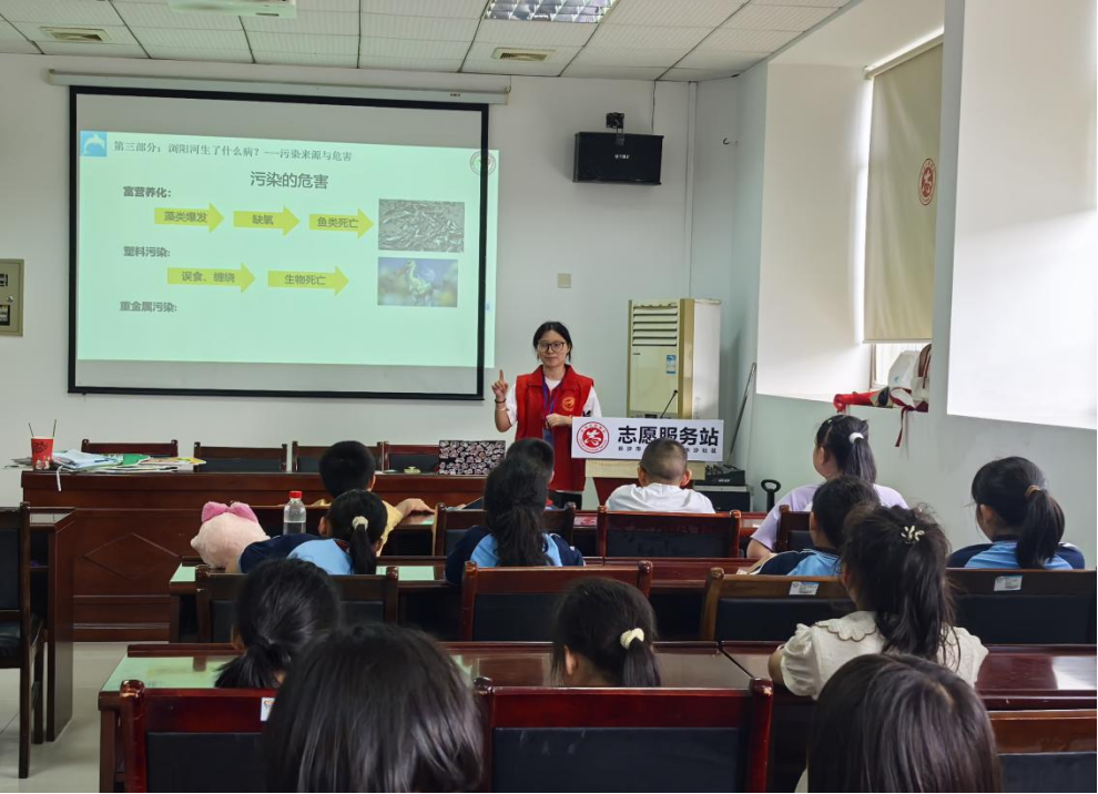 活动在《浏阳河》歌曲中开始,志愿者通过互动提问引导社区青少年思考河流的意义,激发参与热情。在理论讲解环节,志愿者围绕四个板块系统介绍浏阳河生态:从地理特征到生态系统的“生命共同体”比喻,从生活、农业、工业三大污染来源的案例分析,到源头减量、人工处理、生态修复和法律监管四类治理措施,层层深入,强化青少年的河流保护意识。