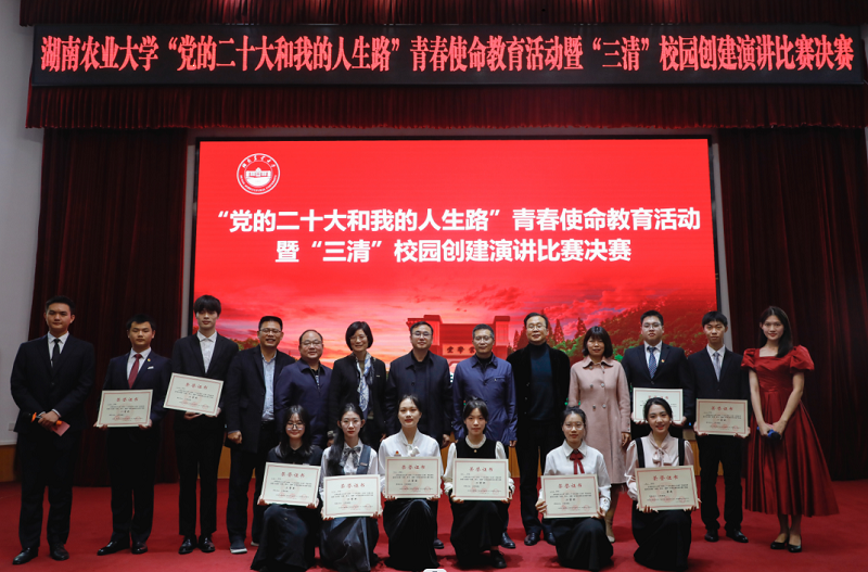 十名参赛选手以习近平新时代中国特色社会主义思想为指导,紧紧围绕学习宣传贯彻落实党的二十大精神主题,深入宣传新时代十年的伟大变革、党和人民创造的丰功伟绩。他们将个人人生道路与党的百年历史相结合,将个人成长发展与乡村振兴伟大战略相结合,将个人理想抱负与强农兴农责任担当相结合,将个人行为举止与“三清”校园创建相结合,用饱满的热情、真挚的情感、精彩的语言进行了生动的演讲,发出了“请党放心,强国有我”的铮铮誓言,展现了湘农学子良好的精神风貌、饱满的学习干劲和昂扬的青春斗志。