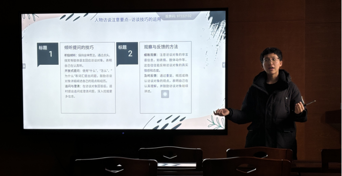3月15日中午12:30 - 13:30,湖南农业大学调研协会第60期湘农学堂在文渊馆红色讲堂如期举行。本次湘农学堂以“如何开展人物访谈”为主题,一同探索人物访谈的奥秘。