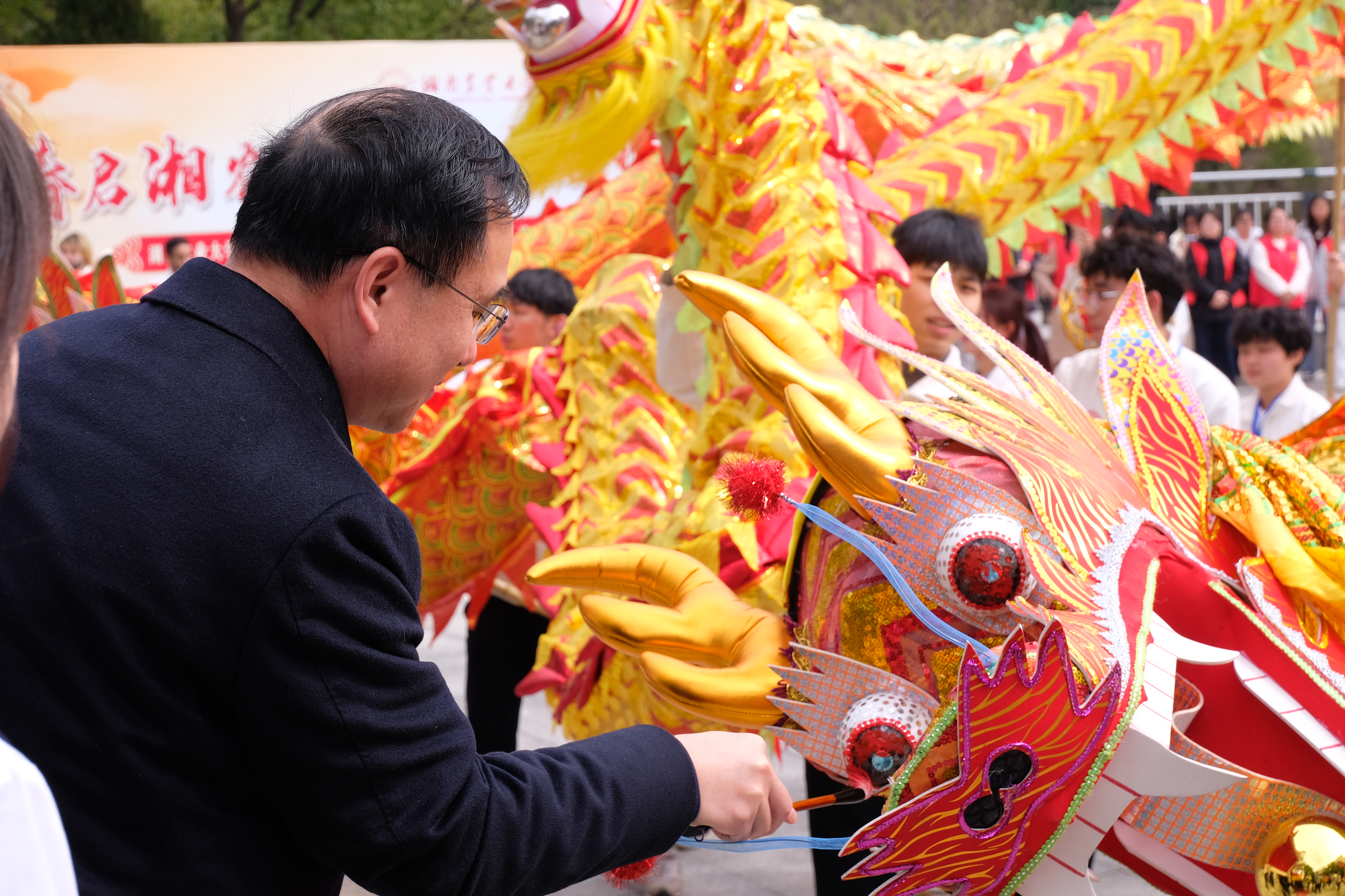 紧接着,校党委副书记陈光辉教授郑重宣布湖南农业大学非遗校园文化节暨“春启湘农承文脉,龙腾非遗传薪火”活动正式开幕。