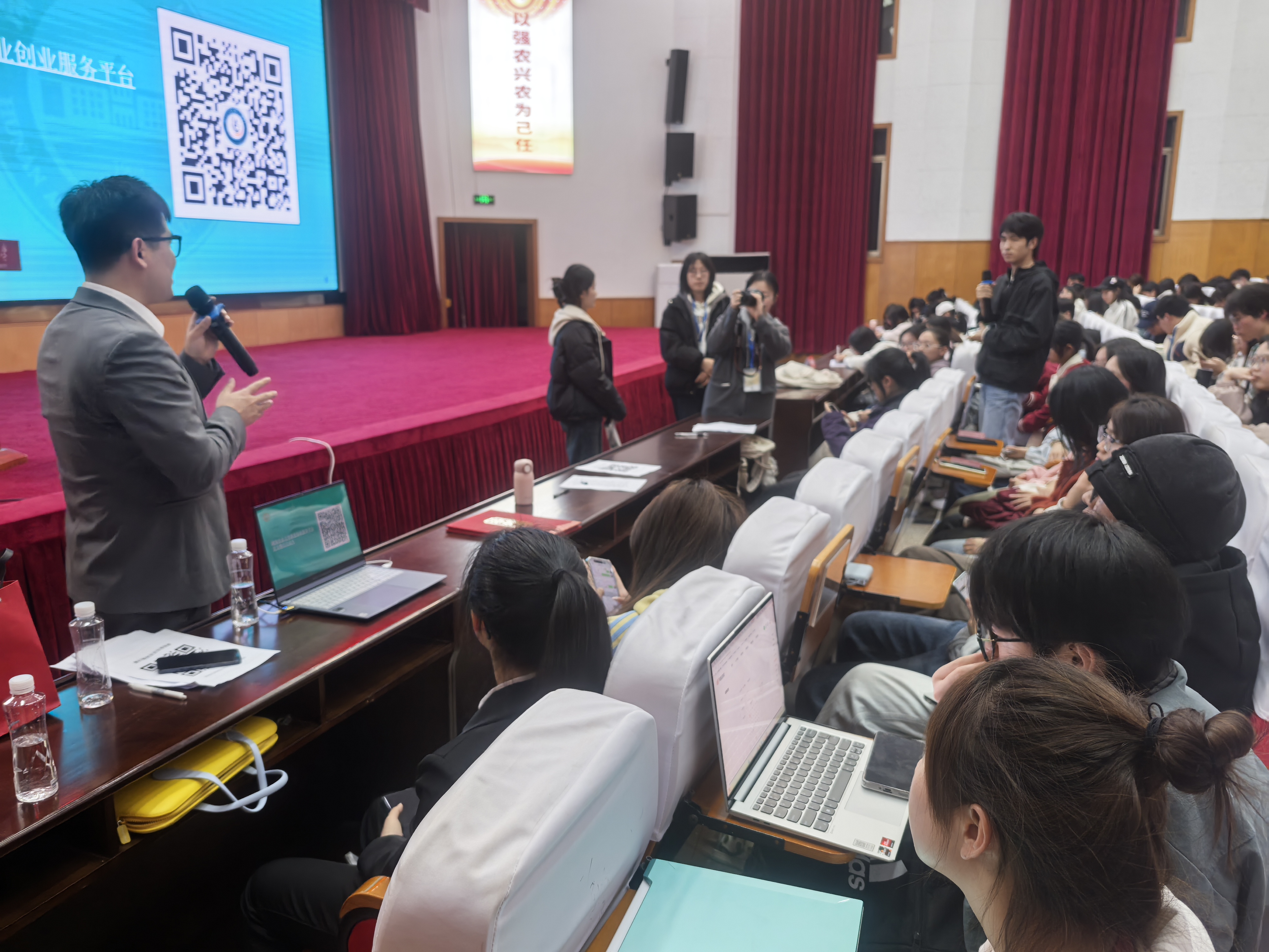 兰轮轮,陕西人,毕业于怀化学院2017届物流管理专业。大学期间,他便展现出非凡的创业热情,先后涉足各项领域,在实践中积累了丰富的创业经验。在讲座上,兰轮轮讲述了自己从基层创业者到农业企业家的转型历程,从项目选择、资金筹集到团队建设与管理等多方面与湘农学子进行交流。他与大家分享,创业不仅需要有创新的思维和敢于尝试的勇气,更需要脚踏实地的实干精神和社会责任感。