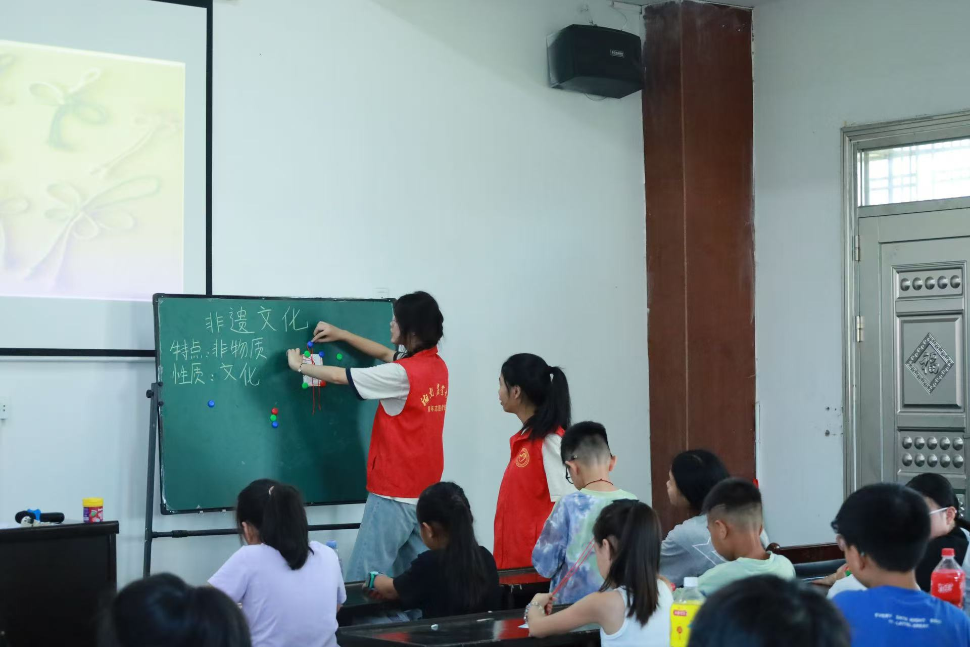 除了各类安全与成长教育课程,湖南农业大学“萤火之光”志愿者团队还为界头村的孩子们带来了充满趣味与文化气息的特色课堂——刮画课与非遗花鼓戏文化课。