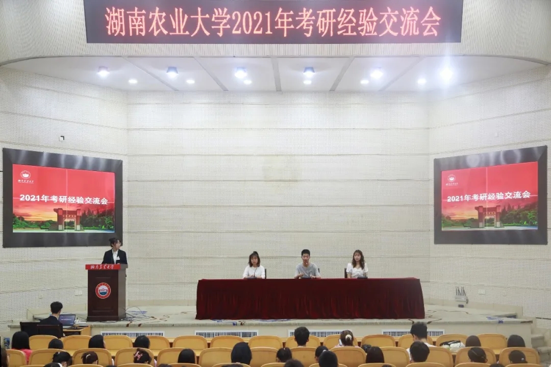 6月2日上午,以“腾流日月研海出,跨越山河顶峰见”为主题的湖南农业大学2021年考研经验交流会在大成厅成功举行。本次交流会邀请到考入武汉大学的黄佳同学、考入西南交通大学的雷长珍同学和考入西北农林科技大学的张颖同学参与交流。